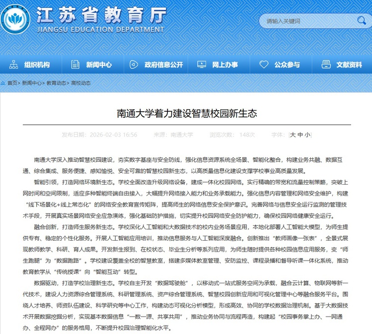 江苏省教育厅官网发布我校智慧校...