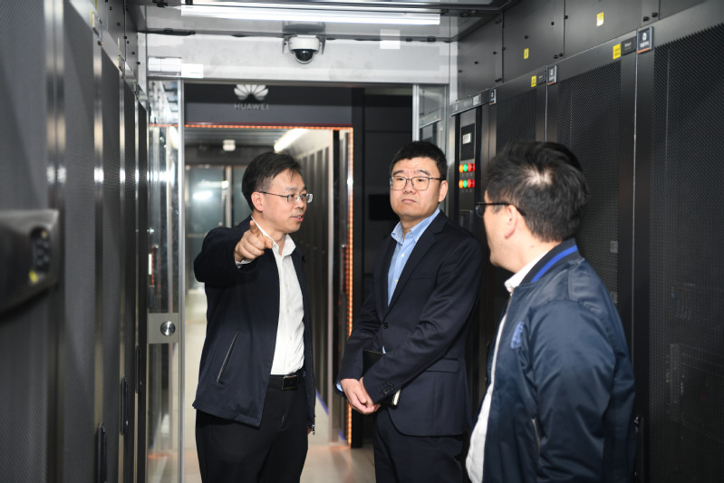 校长王建浦、校党委常委副校长施佺走访数据中心机房