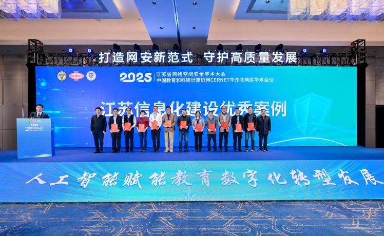 11月6日,2025年中国教育和科研计算机网华东北地区学术会议在南京召开,会上公布了江苏省教育行业IPv6规模部署及教育数字化转型应用案例遴选结果。我校申报的案例《探索构建基于“双轮、三维、四域”模型的教育数字化转型生态》,成功入选“信息化建设优秀案例”。